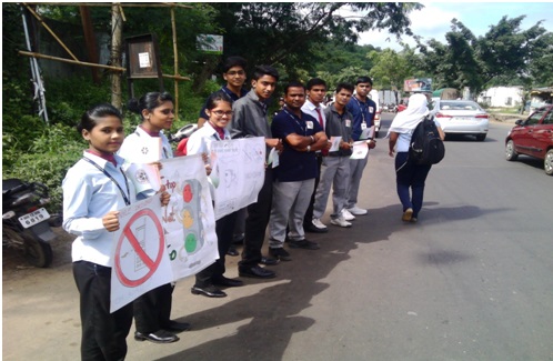 On this occasion students has displayed various road safety signs to the travelers and civilians at Bavdhan Chowk near ICICI Bank Bavdhan, More petrol Pump, Bavdhan, Chandni Chowk, Lalani Quantum Mumbai – Bangalore Highway..